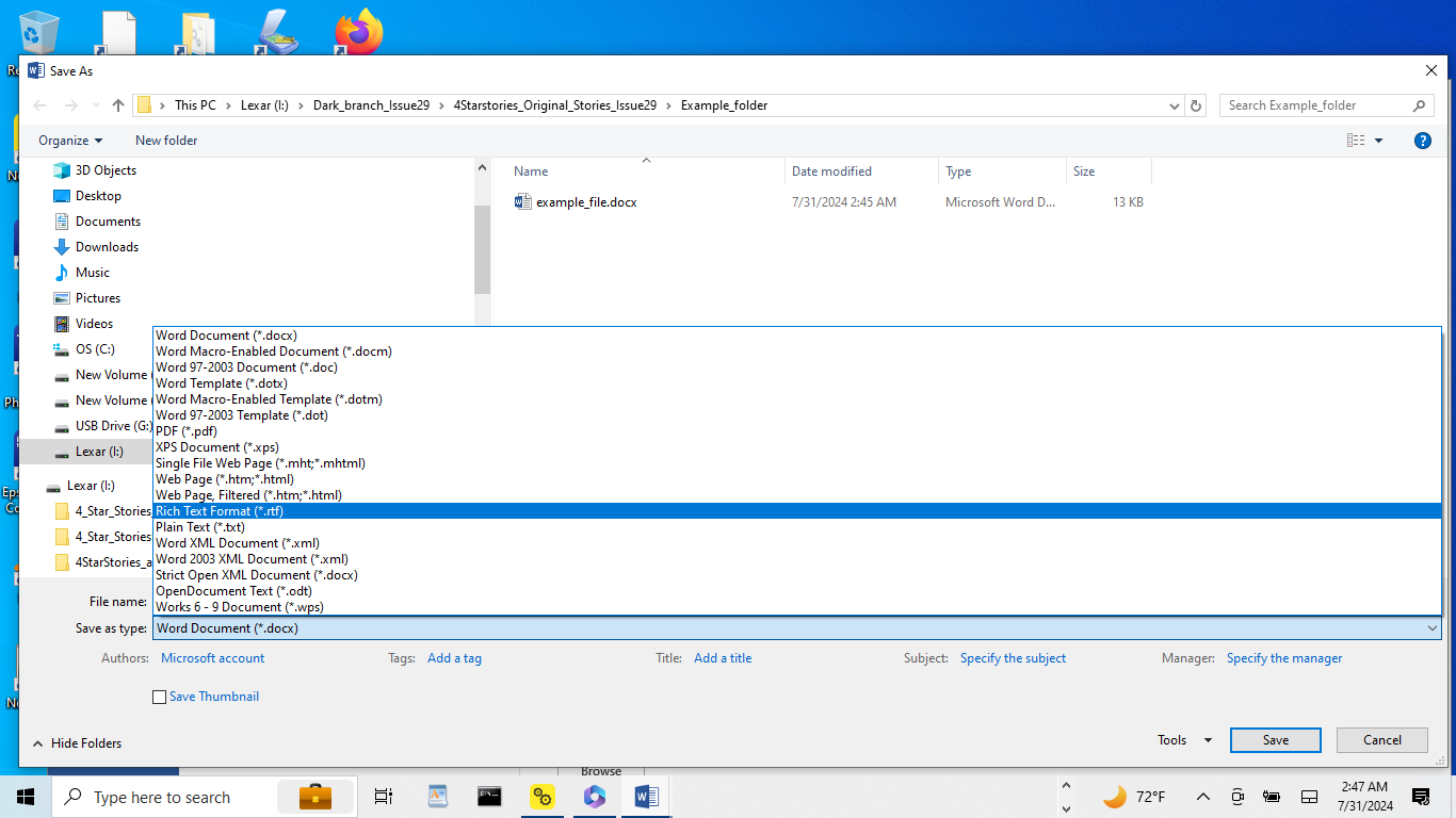 save as an Office Open XML standard document.
