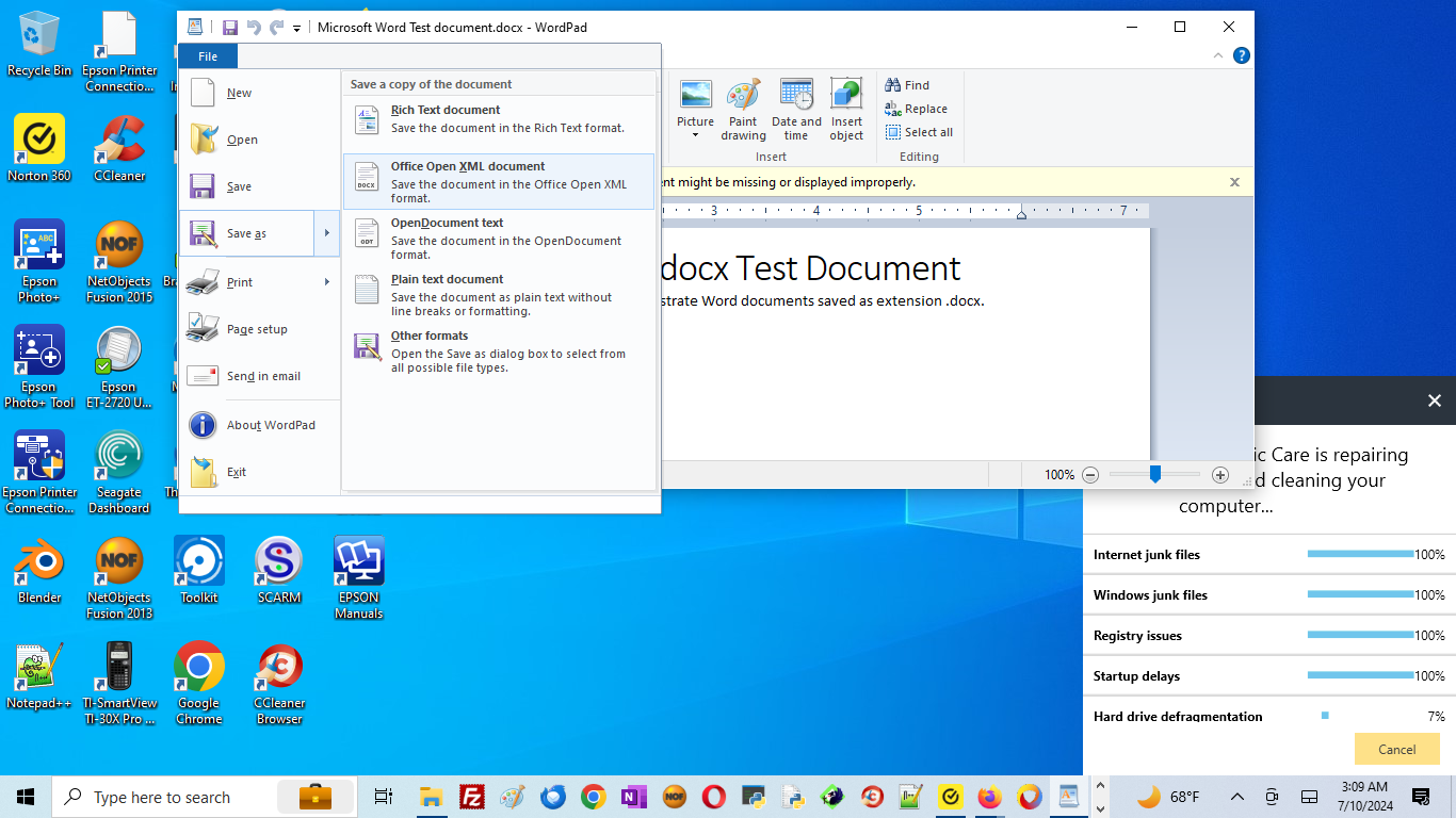 changes (if necessary) save the document as one of several