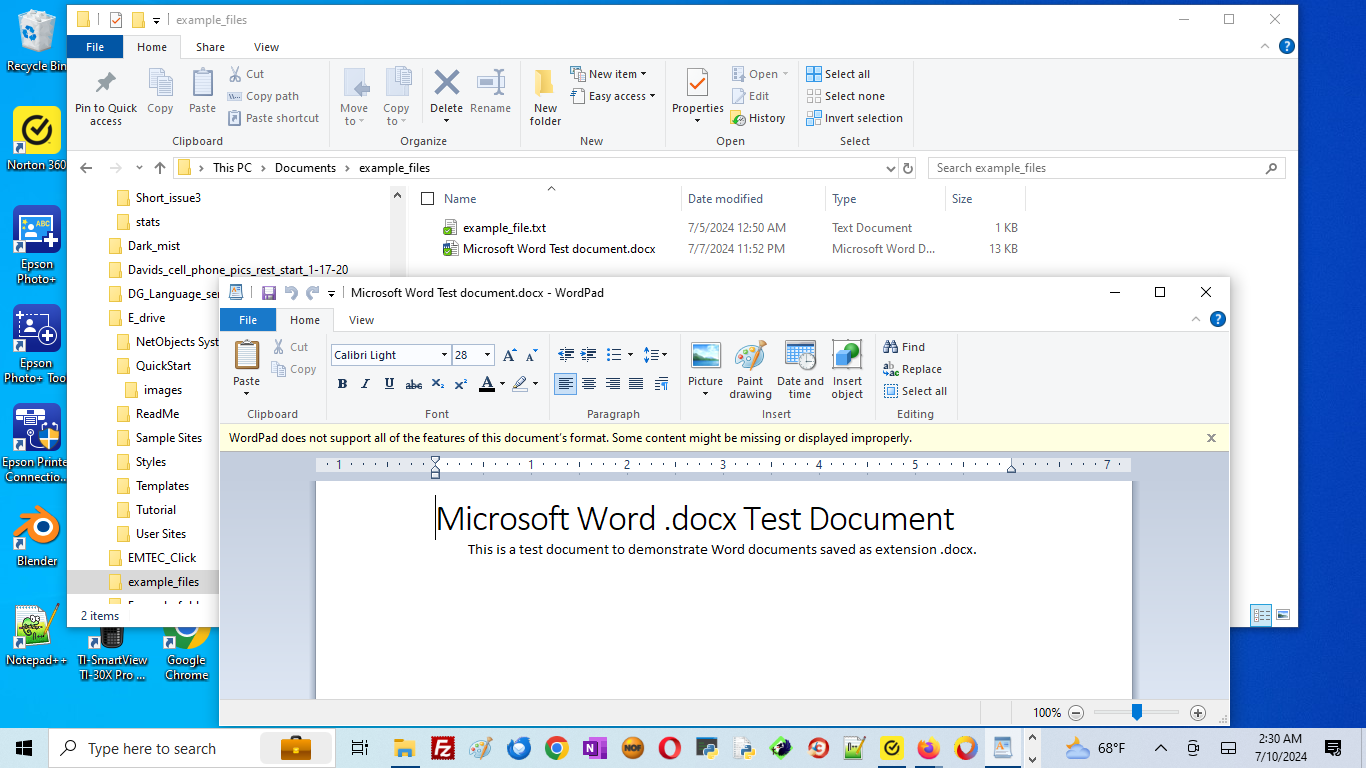 NOTE: WordPad is not a full-function