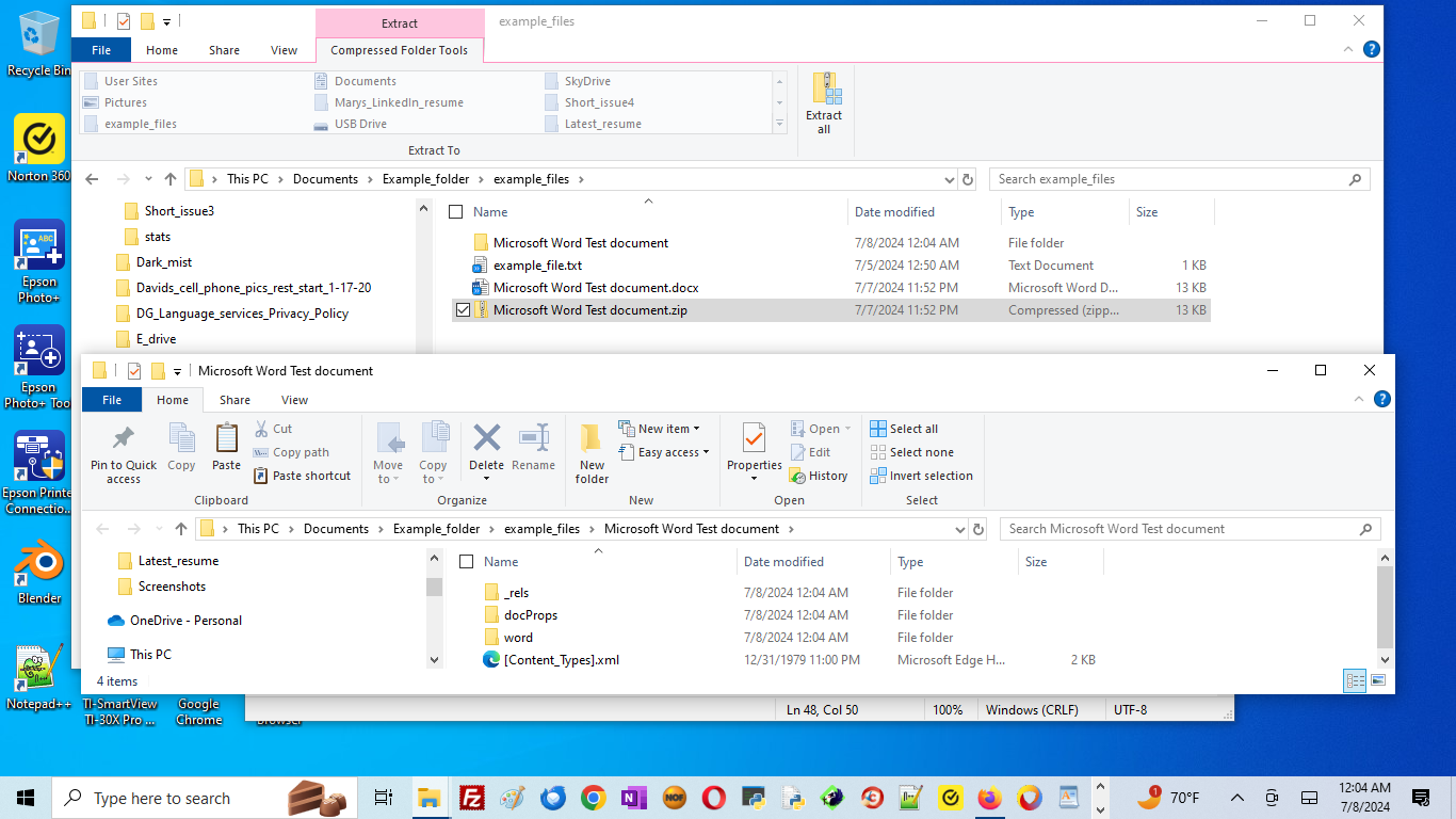 .docx file, rename the .docx extension to .zip, and then