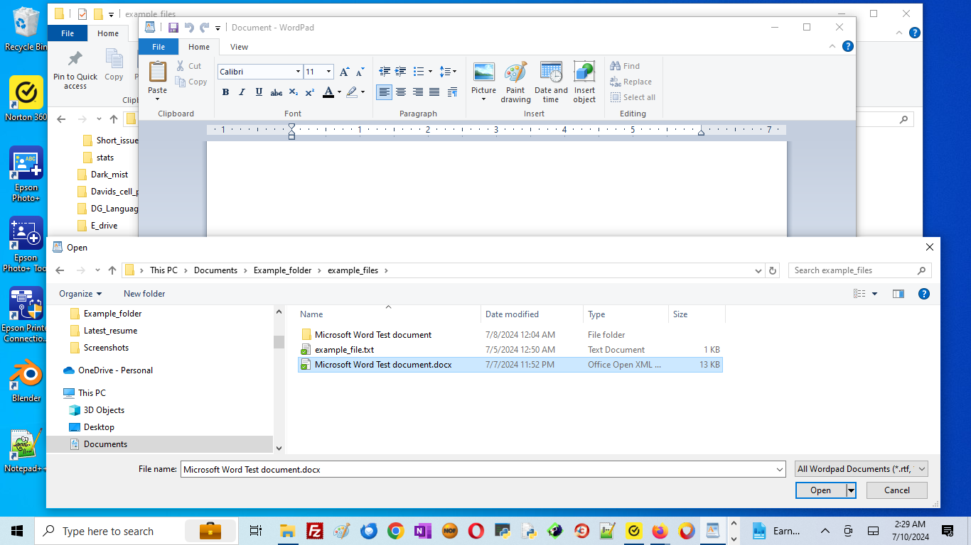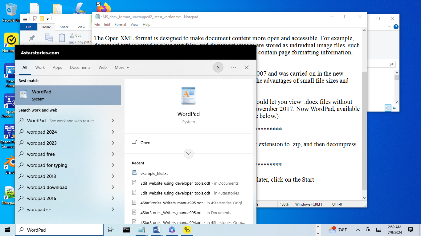 opens in WordPad.
