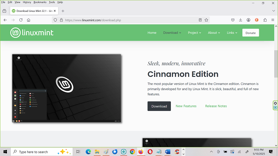 Linux Mint 22 Cinnamon Edition.