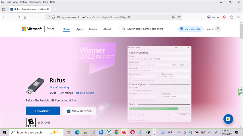 and a program called Rufus. This program is available free